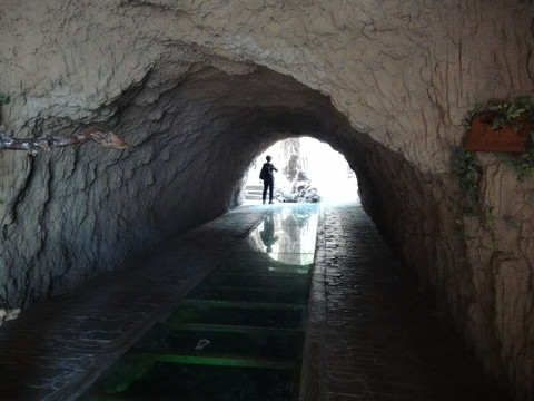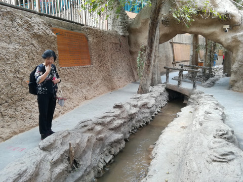 坎儿井意为“井穴”的意思,早在《史记》中便有记载,时称“井渠”,维吾尔语为“坎儿孜”。这是坎儿井之名的最初由来。在博物馆的北侧有一条坎儿井原型,分为暗渠和明渠。游客可以经过地下坎儿井通道,对坎儿井的工作原理有个直观的感性认识。