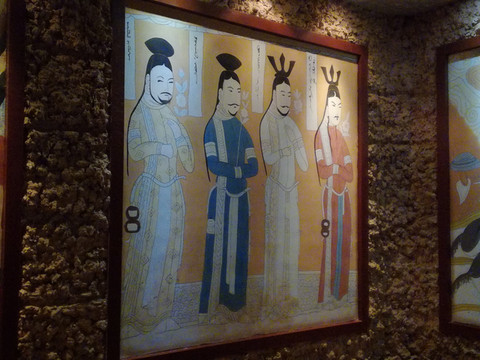 火焰山景区分地下和地面两部分,游客要先进入地下景区(西游文化长廊—火焰山地理介绍—古高昌名人堂),再经过这座巨型温度计和《西游记》“九九八十一难”浮雕区,才能登上地面进行游览。读完火焰山景区的全部内容,我们大约只用了半小时。
