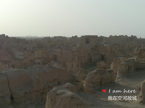 站在交河故城的观景台上,举目望去,这里尽显千年原始和苍茫。不由使人想起《李白.关山月》“明月出天山,苍茫山水间。长风几万里,吹度玉门关;由来征战地,不见有人还”。