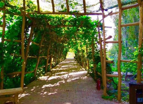 我们从酒店门前乘公交1路,1元/人,在亚尔镇站下车,一路向北步行600米,即到了坎儿井民俗园(门票40元,65岁半票)。坎儿井民俗园位于吐鲁番市东昌区,距离市中心约5公里,是吐鲁番著名景点之一。景区内设有坎儿井原型观赏区和坎儿井民俗博物馆,游客来此可以了解新疆地区天山坎儿井文化,并在此用餐住宿,体验维吾尔风情和美食。