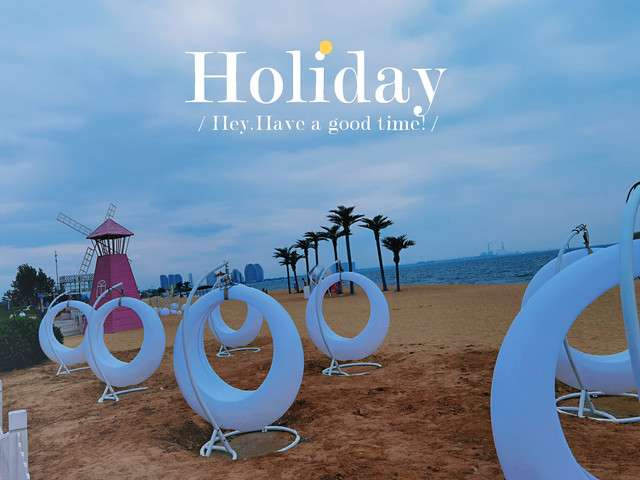 这边海滩比较适合日常休闲,或者带娃消食。海边儿童玩乐设施很多,秋千、滑梯、小火车......每年暑期,还会举办同湾集市,来的也都是孩子的项目,蹦床、开车、打靶、套圈、淘气堡以及各种玩具零食。这边沙滩的缺点是不适合游泳。没有挨着海水的沙滩。海水里沙子不细腻,很多石子,下去特别扎脚。偶尔有游泳的,全都穿着浮潜鞋。不过不是经常在海里游泳的,建议不要在这边下海。看起来比较危险。