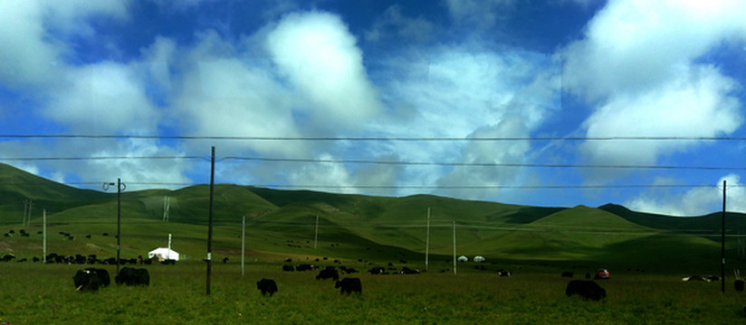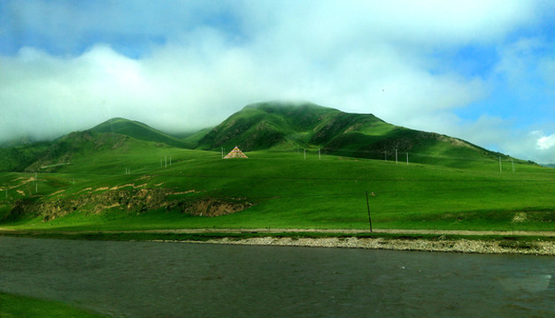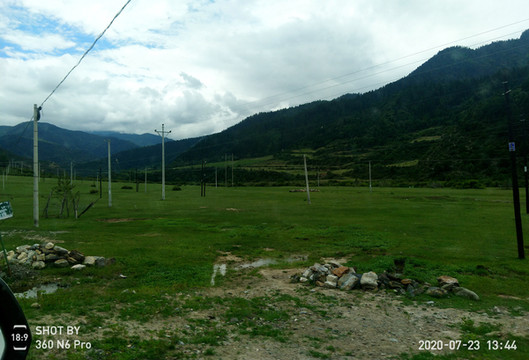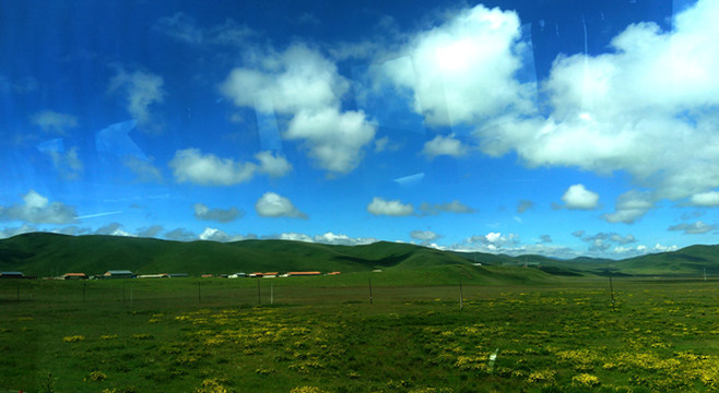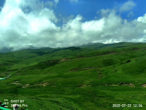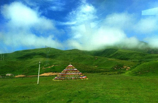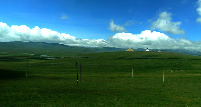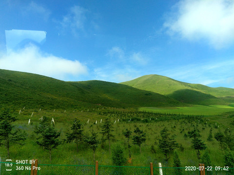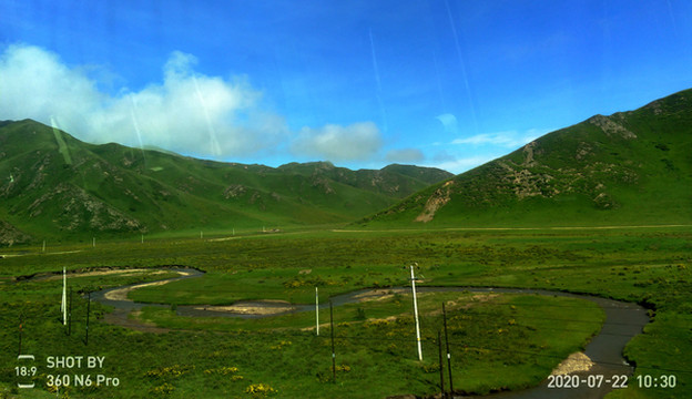 22号一早就乘7:40夏河开往郎木寺的班车,经过甘南州的首府合作市,前往朗木寺。大巴行驶在草地、山丘兼而有之的沿山公路上,预计12点左右到达郎木寺。郎木寺海拔3300米,天气预报的温度是7-21度,阵雨转阴。一路上是多云间晴的天气,但愿到达后天气适宜。