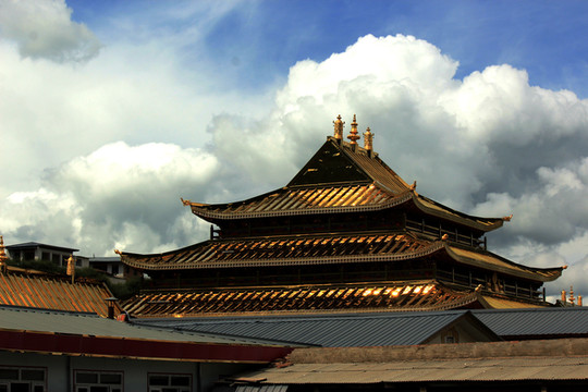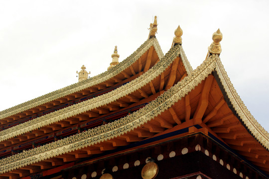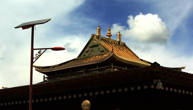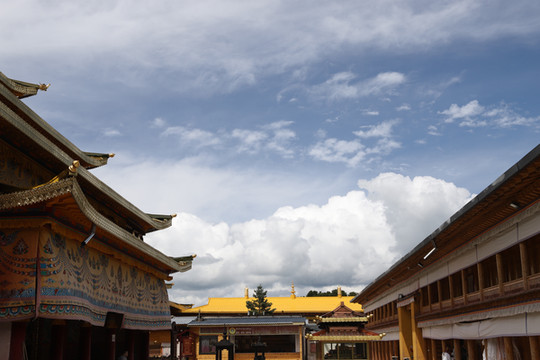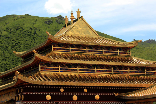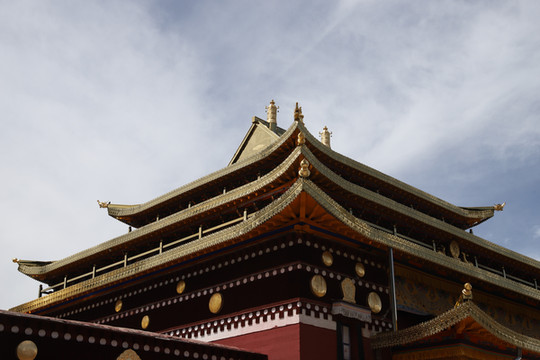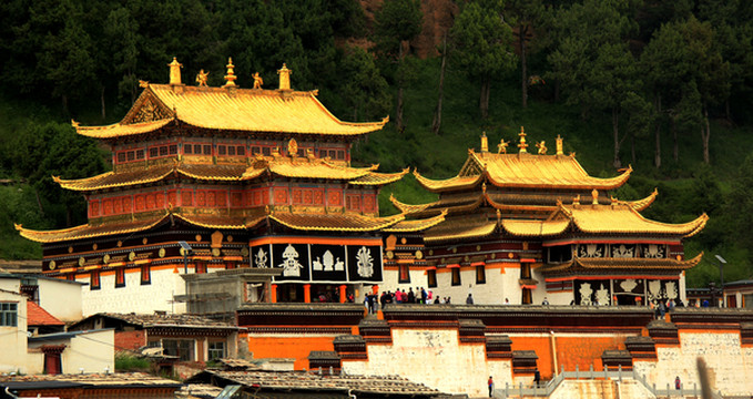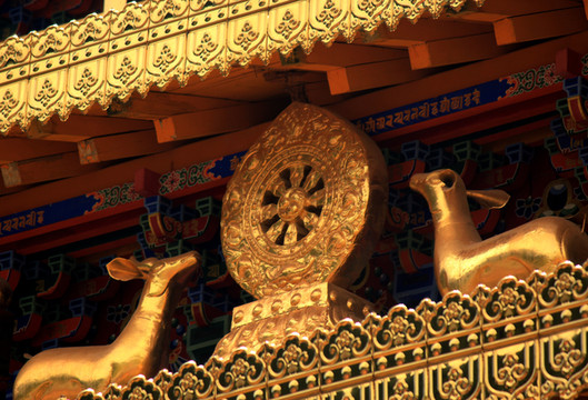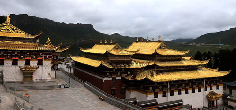 除了有以上殿堂外,甘丹赛赤寺还有闻思、续部、时轮、医学、雕版印经等五大学院。寺内建筑都金碧辉煌,每一尊大殿都以镀金为顶,充分显示了藏传佛教在藏区无上的地位和影响力。