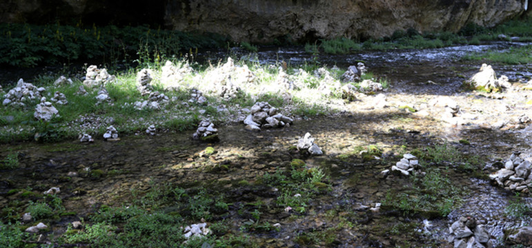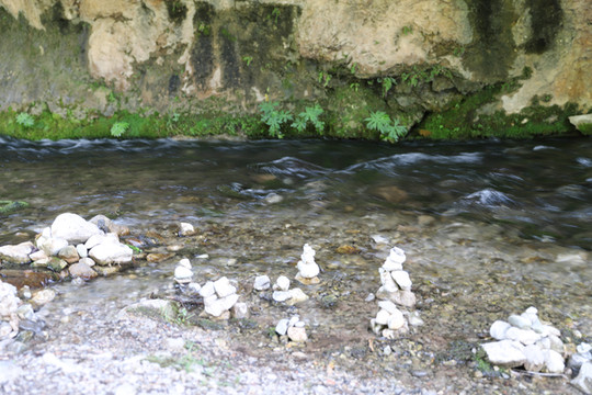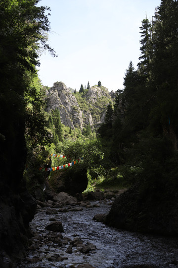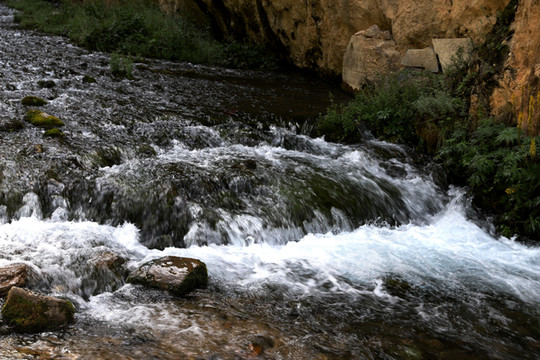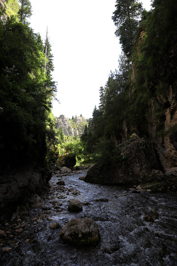 沿峡谷上行不到500米,基本就无路可行,只有沿着溪边的岩石或石块小心翼翼前行,据说上行一公里左右就可看到几个泉眼出水,这里就成为了白龙江的源头。为了安全起见,走到无路处时,我就原路返回,然后出格尔底寺大门回宾馆了。