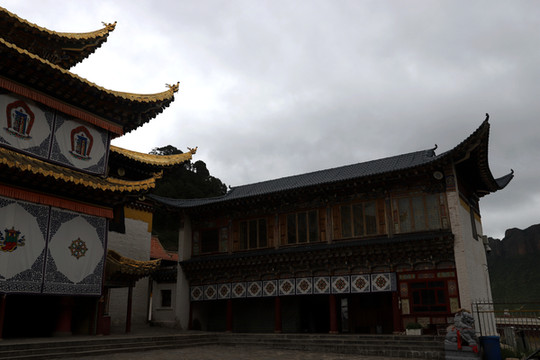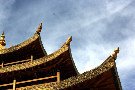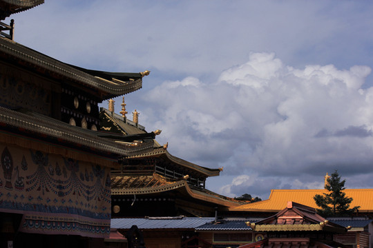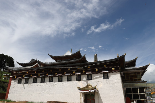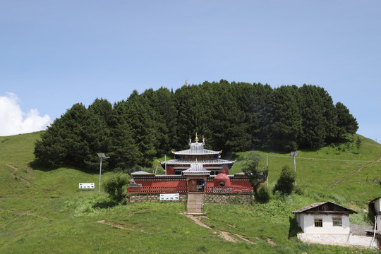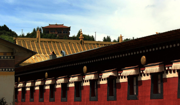 在宾馆住下吃罢午饭以后,就前往四川朗木寺去游览。天气仍然非常好,蓝天白云,让人心情非常舒畅。沿路的一些寺院和藏族建筑很有特色。