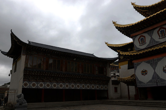 23号早上6点就起床了,拿上相机出门,打算拍拍郎木寺清晨的情景。今早是个阴天,拍摄效果可能不会太好。出门右转上到一个山坡(宾馆在半山坡),这时天还不太亮,调整参数拍了几张就下山了。
