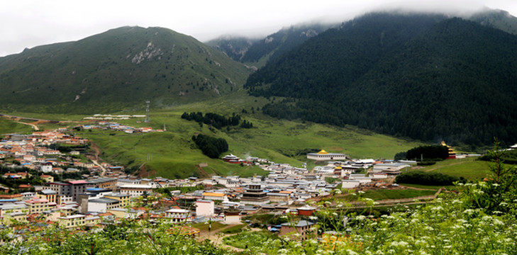 在甘丹赛赤寺院可以俯瞰郎木寺镇全景,其周边的几个山头都有观景台,可以远眺郎木寺镇及其周边的美景。