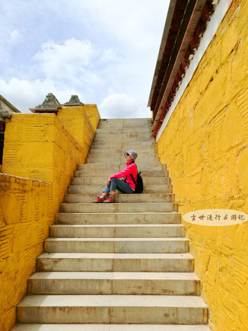 在藏传佛教的色彩语言中,黄色备受尊崇,据说只有活佛驻锡地和高僧大德的寓所才有资格“身披黄色外衣”。在宗喀巴大殿前的台阶小憩,感受寺院内尊贵的“黄色”调。