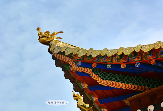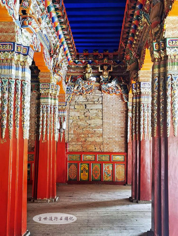 穿行于赛赤寺的佛殿之间,随处可见金光闪闪的火焰珠宝、法轮、金鹿、金龙头,还有大气伟岸的龙头翘角,浓郁的藏传佛教气息扑面而来。