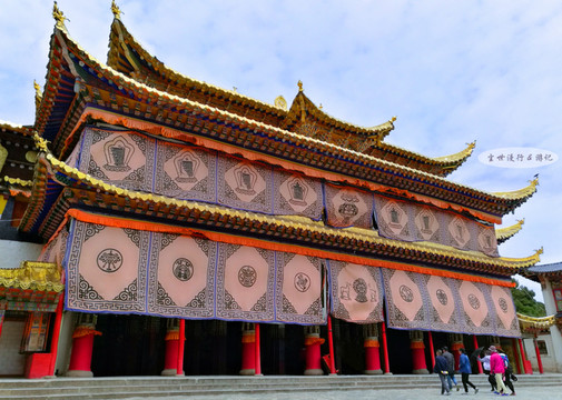 褚红明黄、白壁金顶、黑框红格,颜色一抹的鲜艳明亮,藏传佛教寺院的风格在这里华美而浓郁……