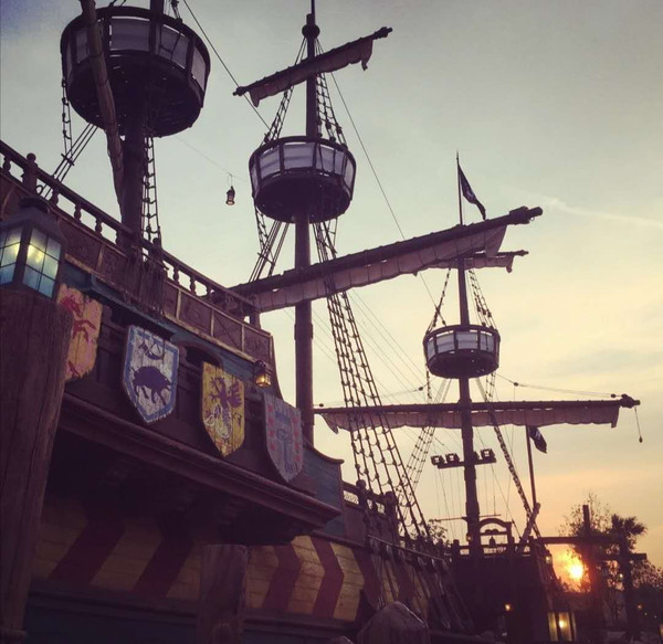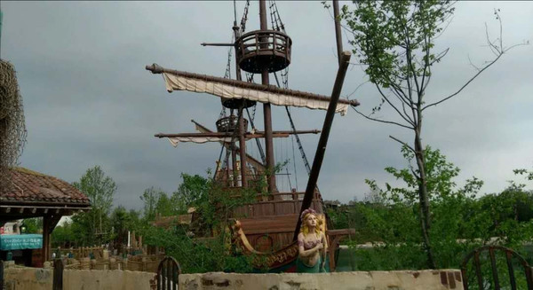 接下来我又沿着之前的路线走到了加勒比海盗区域,再次体验了一把沉落宝藏。依然只是排了二十几分钟,坐在我旁边的姑娘明显被突然出现的大海怪吓到了,但我竟然全程没有深海恐惧症出现。我在玩完这个项目之后很是纠结。一方面我真的很想再去体验极速光轮,;另一方面我也想去体验没有玩过的绳索挑战,于是我做出了一个令我后悔的决定—去玩绳索挑战。