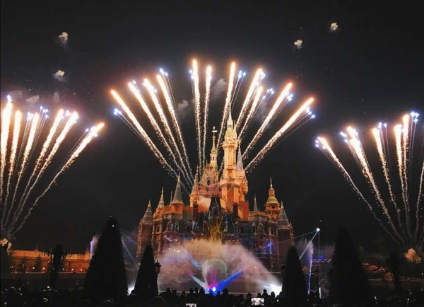 重头戏来了,那便是最后的迪士尼城堡夜光幻影秀。夜光幻影秀晚上八点半开始,我于七点就开始找位置,但很多人已经占好靠前的位置了。由于前面的人都是站着的,我也不敢坐下,担心被别人踩到。就在等待的过程中,我感到自己全身都在疼痛。算了算一整天自己站立排队等侯的时间,从到达迪士尼入场区域开始,加起来总共得超过六个小时。不夸张地说,如果将零星的排队时间都算上,那足以达到七个小时了。夜光幻影秀很美,让我这个看过不少迪士尼作品的人感动不已。网上有很多相关视频,拍摄角度和清晰度都很好,但只有亲自看了,才能进入到这个美好的梦中。我真的好喜欢迪士尼,想要玩遍世界上所有的迪士尼。