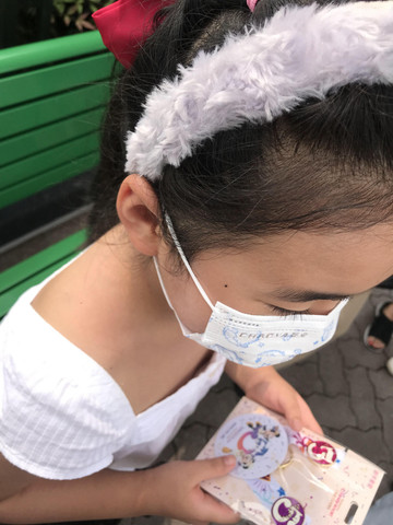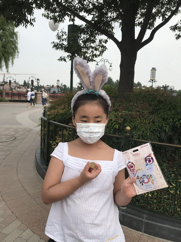 第一天我们遇到两次,都说惊喜发完了,第二天我们遇到两次,最终在娇娇努力了和外婆热情加持下才打动他们,我们参与了一次小游戏,虽然没有得到传说中的自助餐、年卡之类的大奖,但是也拿到了5周年纪念币、新手套装、5周年纪念徽章,超级开心哦。
