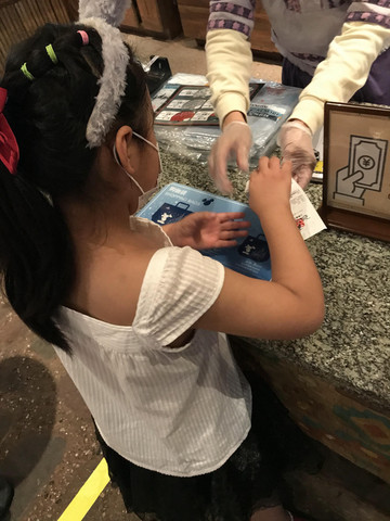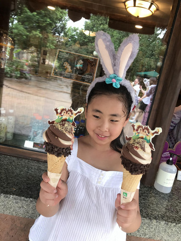 我们去了两天,娇娇抽了两次,第一次是飞越地平线的5张优享卡,第二次是抱抱龙的优享卡,哎我们家老老小小都是玩不了。其实能抽到两份优享卡已经很幸运了,但是更幸运的是第二天碰到两位很NICE的迪士尼工作人员,帮我们换了个全家都可以玩的项目,嗯应该是不能这样的吧。但是看着一脸沮丧的娇娇,工作人员说满足你吧,小朋友开心就好,很感谢他们。
