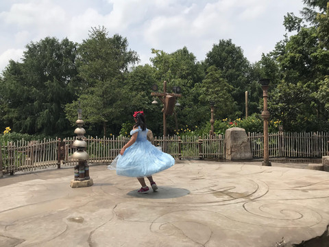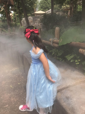 这边还有一块空地,会有很多水雾,拍照也非常仙。这条裙子,娇娇之前穿着去过上海迪士尼、东京迪士尼。现在已经小了,只能勉强套上,这是最后一次穿了,留个念,看着小朋友一点点长大还是很感概的。