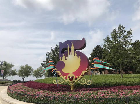 9月是达菲月,花坛的米奇头像已经换成了达菲