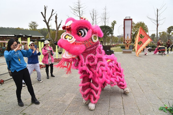 木兰花乡以“乡村游”为主题,打造出365天皆可观赏的花卉世界,三大主题花海,让游客一览繁花似锦的绝妙盛景。乘上小火车,穿行花海。精彩纷呈的舞狮表演,现场气氛欢快喜庆。来自彩云之南的演艺团队,给木兰花乡又增添了几分民族风情。