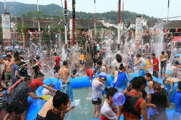 夏季的锦里沟是避暑消夏的好地方,土家族水龙节最初是祈求降雨的祭祀活动,在传统活动的基础上增加了戏水项目,演变成了百人激战的泼水节,不管大人小孩,游客还是演员,都加入其中,飞溅的水花中洋溢着无限的欢乐。