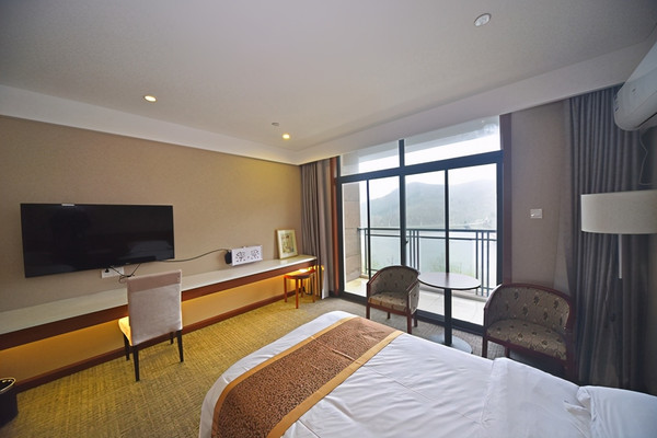 我们住在楼上的湖景房,房间明亮宽敞,床很大很舒服,房间阳台也是观景台,看湖光山色,心旷神怡。晚餐不仅菜样丰富,味道做得也很可口,我们自觉落实了光盘行动。