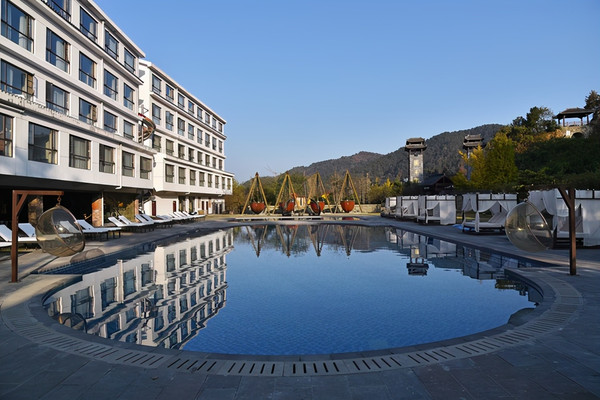 清凉寨度假酒店设有山洞景观的温泉泡池和露天游泳池,泡一泡温泉舒缓筋骨,祛除一天的疲惫。晚餐之后,喜欢静的朋友换上古装,在舒缓的乐曲中体验抄经书,让心情慢慢平静下来,细细品读字里行间的人生哲理。喜欢运动的朋友,瑜伽、太极、健身房都专门的空间。