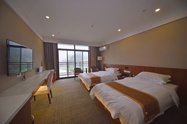 清凉寨度假酒店位于群山之间,风光秀美,设施完善,装修豪华,功能齐全,酒店集旅游、休闲、度假、会议、娱乐、住宿为一体,提供套房、双人床、大床房、家庭亲子房等多种房型,适合各种游客的需求。酒店每层还配有KTV与棋牌室。酒店装饰布置十分雅致而富有禅意,走进走廊就能感受到浓浓的文艺气息。