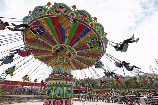 木兰花乡面积很大,不仅风景优美,游乐设施也很齐全。穿越花海,便来到花乡游乐区。在这里,可以体验摩天轮、大摆锤、碰碰车、海盗船、大章鱼、过山车、彩虹滑道、旋转木马、水上滑索、极速卡丁车、山地越野车、真人CS以及射箭、攀岩、喊泉、等二十多个游乐项目,可以买张套票玩一天。