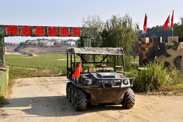 在河西军事体验区,我们看到了航母舰载机歼-15飞鲨的模型。轻盈的体态,强有力的发动机,机翼挂架上威风凛凛的导弹,在夕阳的映照下,更显英姿飒爽。99A坦克,武直10直升机的等比例模型,果然霸气威武。河西军事体验区有小火车、骑马、真人CS、滑索、吊桥等体验项目,还可以乘坐小坦克和特战车,做出原地360度旋转,“Z”字形大转角机动、“V”字形漂移等酷炫的动作,既刺激又过瘾。