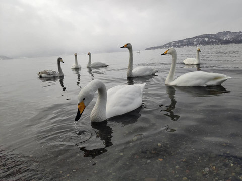 流冰船结束司机带我们去看天鹅,吃温泉蛋。那叫什么湖我忘了,就是去阿寒湖的路上,沿途会经过的。