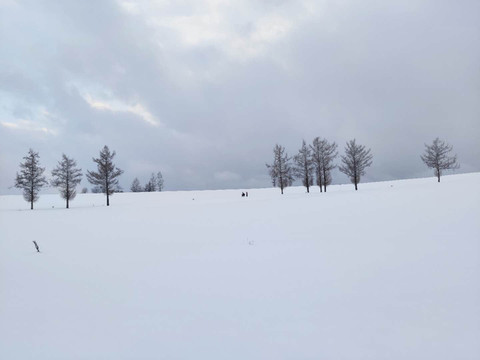 最后是五棵树,五棵树不是一个地方五棵树,而是五个地方不同是树。我看到有攻略说五课树太坑了,就是几颗破树拍个照。本来没抱太多期望,真正到的时候才发现,太美了。连天的雪只有几棵树遗世独立,特别美。但是很大一个原因应该是我们去的时期比较敏感,没有人出来旅游,周边的雪地都没被破坏,到了地方也没有人,所以显得特别的美,想想如果人多了围着几棵树拍照,那是感觉不出美来。这个就不多做介绍了,上几张随手拍的照片吧。