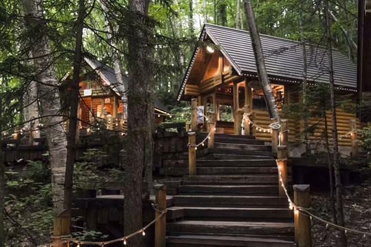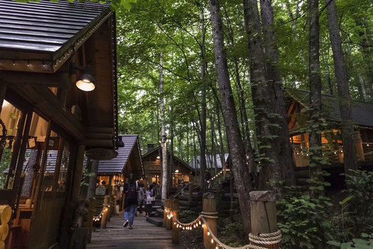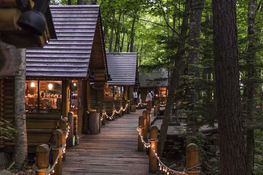 森林精灵的露台(Ninguru Terrace)为作家仓本聪所设计的森林游步道,茂密树木环绕的森林中,聚集着15家风格各异的圆木建筑手工艺品商铺,里面贩卖各式各样的特色精品,有一些店出售的都是店家纯手工打造小摆件或饰品。整个森林一片宁静,来访和光顾的游客也都是细声细语。如果想来精灵露台,绝对冬季比夏天要美,被白雪覆盖的尖顶小木屋有种北欧圣诞老人村的梦幻感觉。