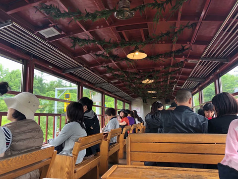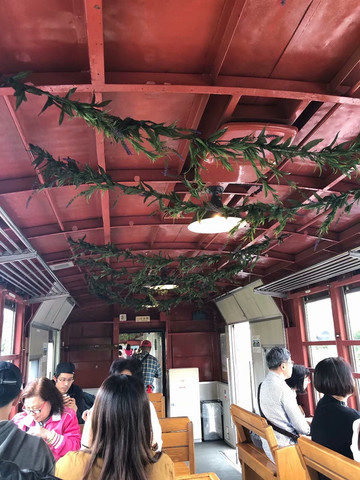 很有特色的列车,木质的座椅,其中一排朝着窗外,正好可以欣赏沿途的风光。