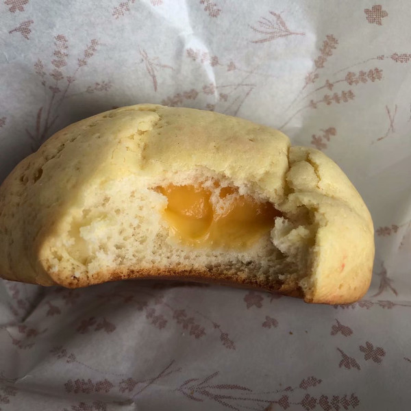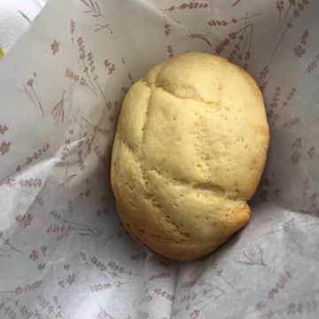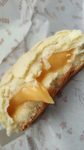 最最推荐的是这个:蜜瓜面包!刚出炉,外皮还有些硬,里面软软的,馅儿滚热,浓浓的蜜瓜香。