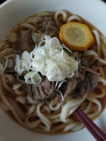 我点的鹿肉乌冬,口感比肥牛要瘦,挺好吃的。