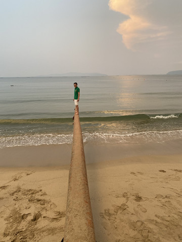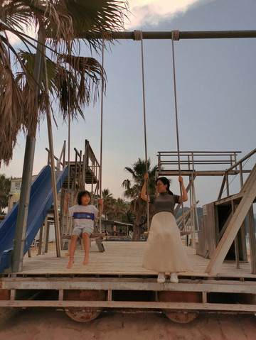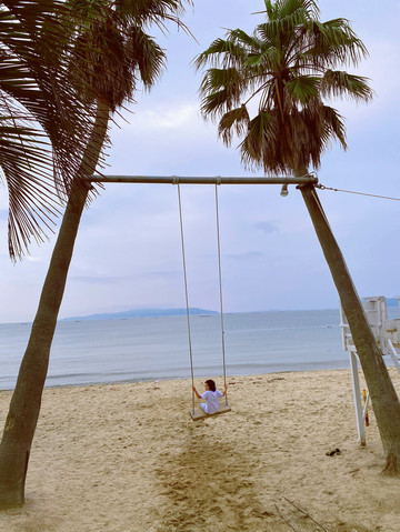 一路继续,来到了下一个极具乐趣的海滩,旁边是一个餐厅,上面好玩的东西太多了,有此生见到的最大的秋千,有索道,有不敢玩的空中泼水,有“独木桥”,