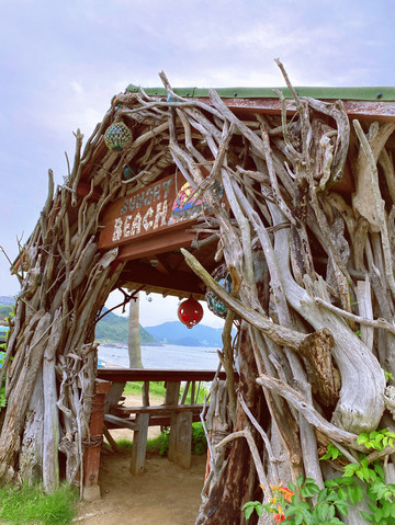 据说年之内只有一天,夕阳会自两岩的缝隙间落下,在落日和海面的相辉映下显得更为浪漫。白色的鸟居更显得纯洁二和浪漫。在夕阳下,亦或坐在沙滩上心无旁骛的静静的欣赏这美景。亦或者坐在路边的任意一个咖啡馆里,欣赏这落日与美景。距离此处不远处有好多特别有特色,都争相做出自己特色的精致的cafe,无论是跟爱人约会还是与闺蜜游玩,都充满趣味和浪漫。期中下面的这个像鸟巢一样的地方,是sunset cafe修建的,个人觉得是最浪漫最佳的观察海景与落日的地方。