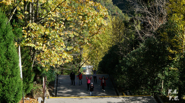 乘坐先进的交通工具下了金顶到达琼台。金顶和琼台之间也有步行石道可往返。