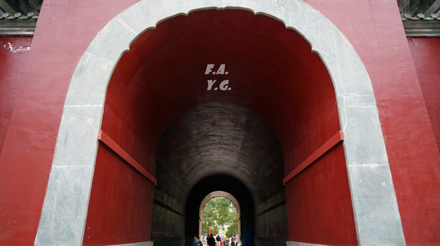 紫金城四方各建一座仿木石建筑天门,象征天阙。
