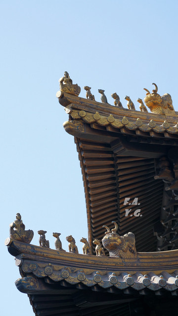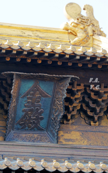 它采用了中国古代建筑中皇帝才可以使用的最高等级:重檐庑殿九彩斗拱,还有明亮的鎏金处理。