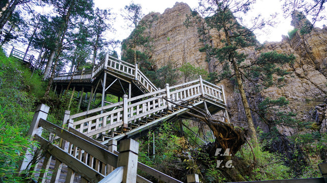 红坪景区又称红坪画廊谷,峡谷两侧奇峰林立,珍稀中草药遍布其中,相传为神农氏架木为梯采集百药之处,至今仍保留着古老的神农天梯。