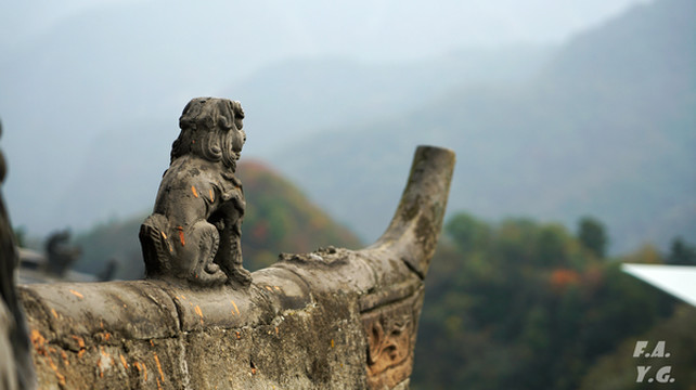 像龟背一样的是金顶所在的天柱峰,左侧翘起的山峰看似龟的脑袋,而环绕天柱峰的紫金城恰如一条蛇。我相信,这样的龟蛇相绕绝不是无意为之。