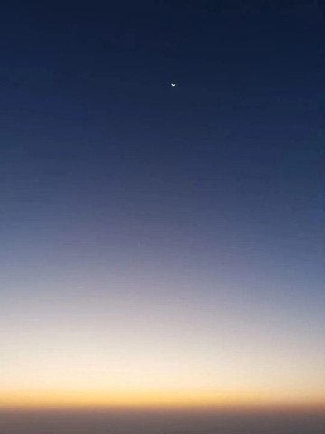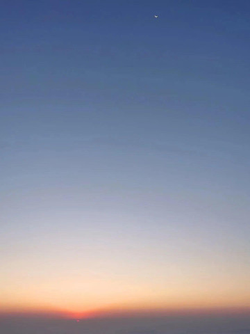 日出时,弦月仍然挂在那里,如此,太阳和月亮就在这一刻相遇了,站在此刻的距离上,月亮和太阳竟差不多大小,这算不算“日月同辉”呢?