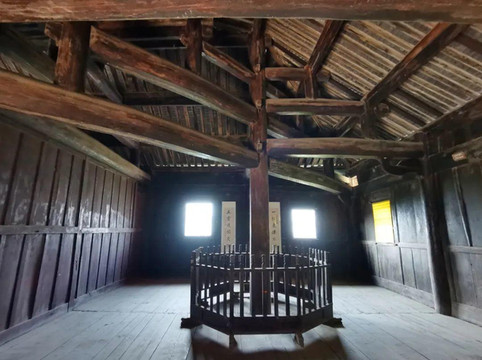 五云楼是武当山古建筑中最高的木构建筑,装修设计独具匠心,采用12根梁枋交叉迭搁,使其科学分力荷载,达到了建筑工艺和使用功能的和谐统一,既节约用材,又增大了空间,被称为“一柱十二梁”。