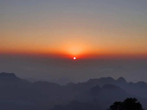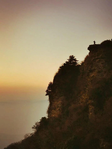 太阳渐渐升高,对侧山峰上忽见一人负琴而立,抚琴日出山巅,这个人可真有情趣。