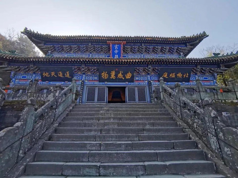 紫霄宫位于逍遥谷和南岩之间的展旗峰下,是武当山道教活动中心,历史上是皇家庙观。