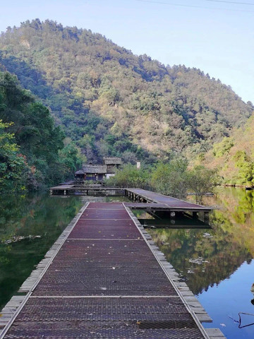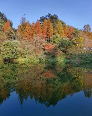 猕猴谷顺杜鹃溪而下是龙泉湖,湖水十分清澈,秋天的颜色尽在湖中。