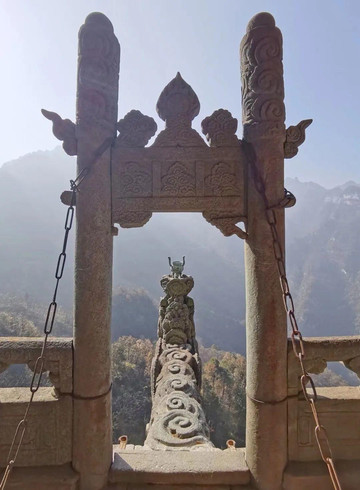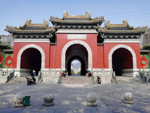 从南天门拾级而上,途径灵官殿,殿内有一尊灵官神像,面生三目,能识人间善恶,专司天上人间纠察之职。