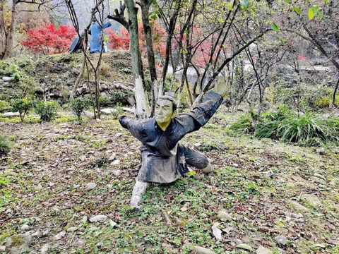 景区有一座张三丰打太极雕塑,我去的时候是秋天,落叶散布在张三丰脚下,让我想起李连杰主演的电影《太极张三丰》,片中的君宝(张三丰原名)悟道后在林中舞太极,拳风旋起,落叶飞舞,“有极无极成太极,一缕真气胸中藏”,缥缈俊逸,潇洒超凡。再看眼前的雕塑,虽然年长须长,但那份飘逸神采还是让人欣羡。