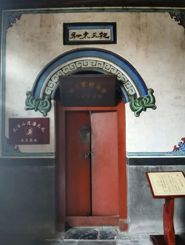九曲黄河墙的尽头是一座宽阔的院落,由三间大殿围着,如今其中展出有书画艺术和武当山摄影作品。