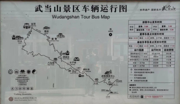 武当山之行可以一日,如下图所示,大的景点不到10处,早上出发坐景区车上山,行程紧凑些,一个白天是可以逛完的。然而我更建议安排两天时间,因为武当的夜空和金顶的日出,值得我们在山上住一晚。