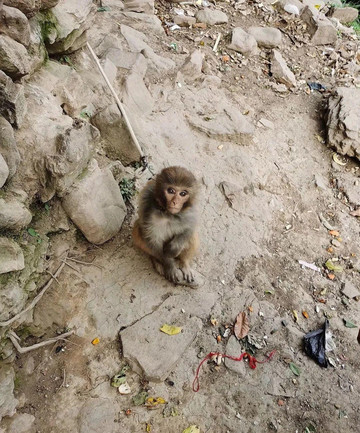 而在最后前往乘车点的路上,看到了与画风不太相济的这只小猴子,被孤零零地栓在链子上,可怜地望着游人,是惹恼了驯猴人还是欺负了游客,囚在这里受罚。